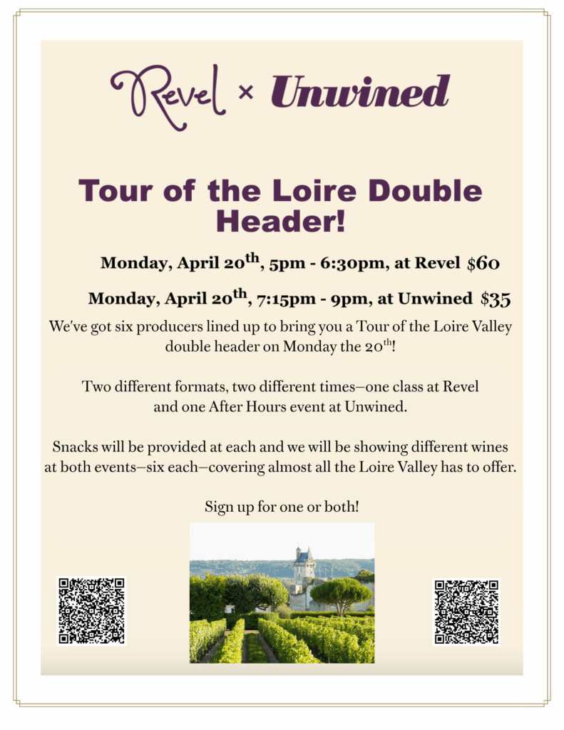 Reservations are live for our double header Loire Valley shindig Monday, April 20th- reserve here!